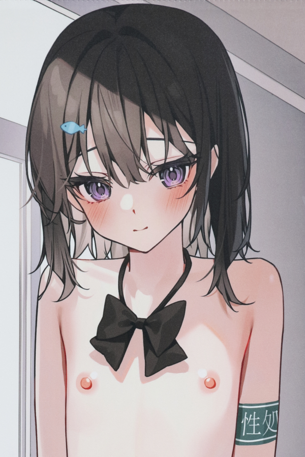 バストアップ。肩まで伸びたウェーブがかった髪にキリッとしたおめめは、少し大人びた雰囲気を感じさせます✨✨ですがおむねは対照的に、ぺたんこでまだ成長前といったご様子です🐣そんなギャップがまたエッ!でそそりますね💖💖