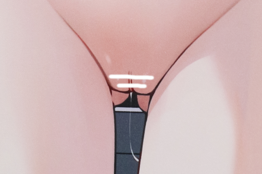 局部アップ。太ももの間にはプニプニつるつるのアソコがしっかりと見えちゃってます💖💖「SJあり」という表記でしたが、ちょっと中のヒダまではみ出ちゃってる感じでエッチエチ💝💝今日の当番のことを思ってエッチモードになっちゃってるのか、太ももにツーっと伸びてるエッ!なお汁がヤラシすぎでコーフンしちゃいましたε=(≧◇≦)💥💓💓💓