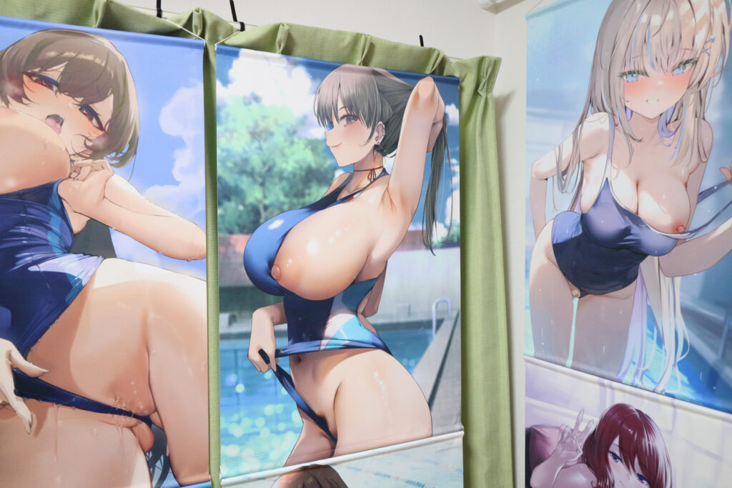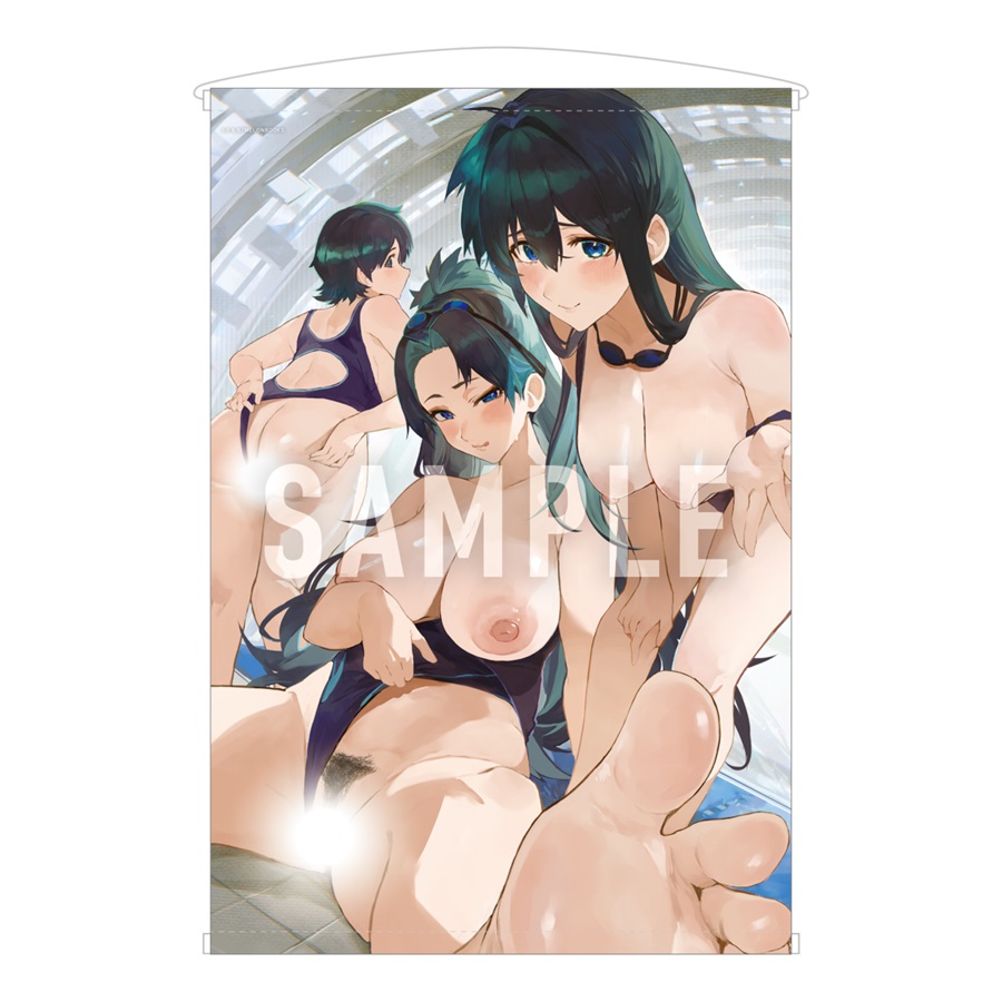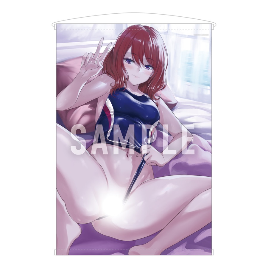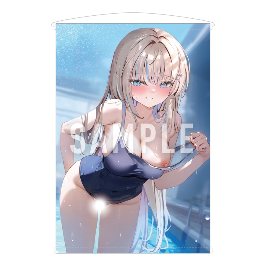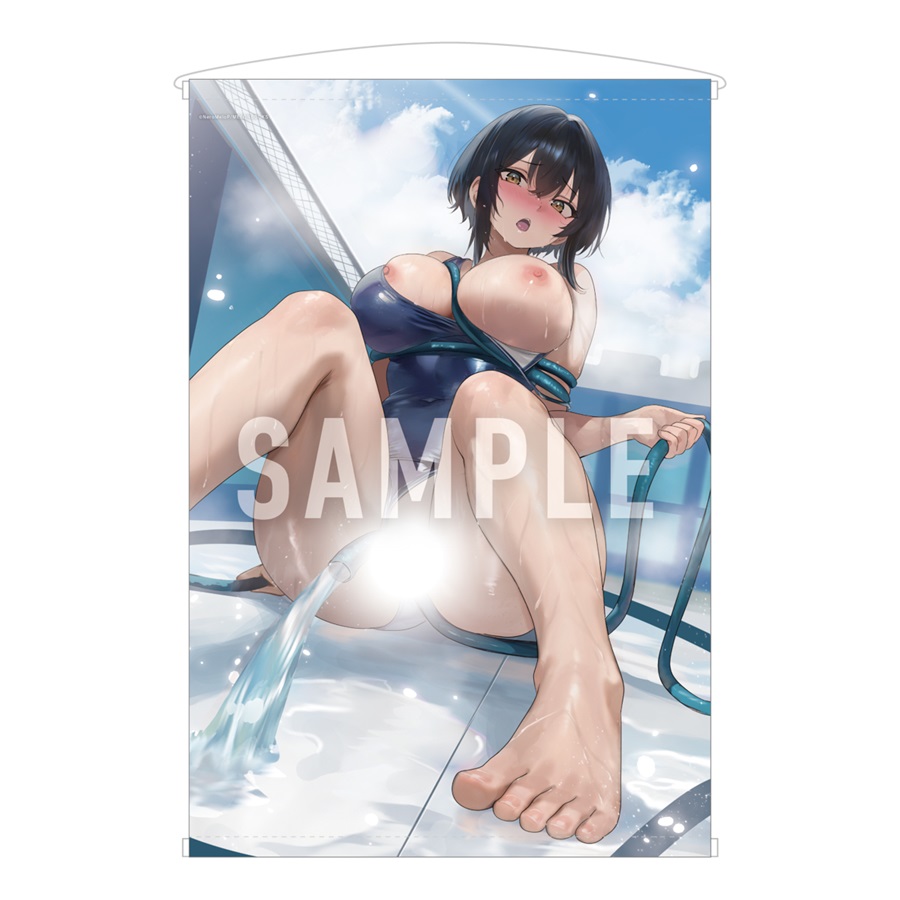 ちなみにその右に飾っているのは芹沢さんのタペストリーで、全く別の企画「C103カタログ発売記念画集限定グッズ」の描き下ろしイラストになります。数が中途半端になっちゃったので、競泳水着つながりでチョイスしてみました🌞