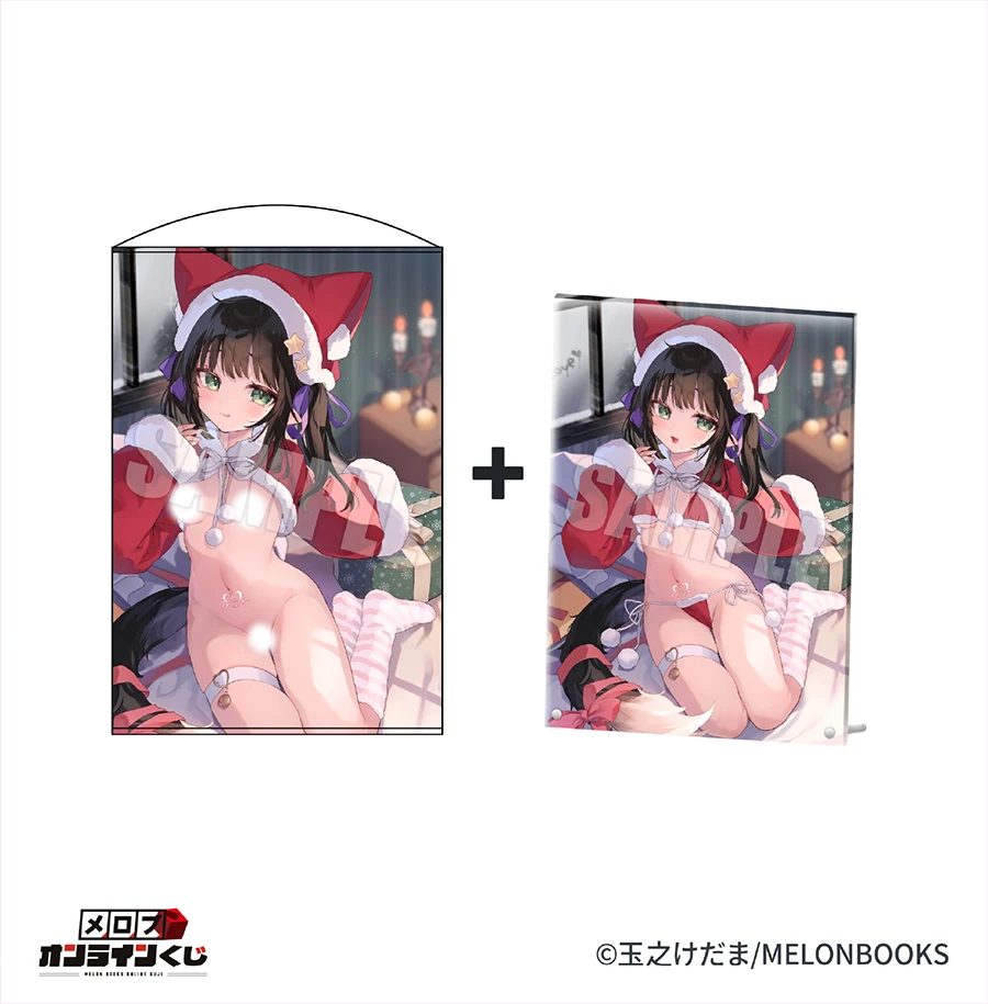 イラストはサンタコスのすとらちゃん💜このオンラインくじ向けに描き下ろされたものだそうです✨A賞はタペストリーとアクリルスタンドとのセットになってまして、タペストリーは成年向け、アクリルスタンドは一般向けのイラストになってました。