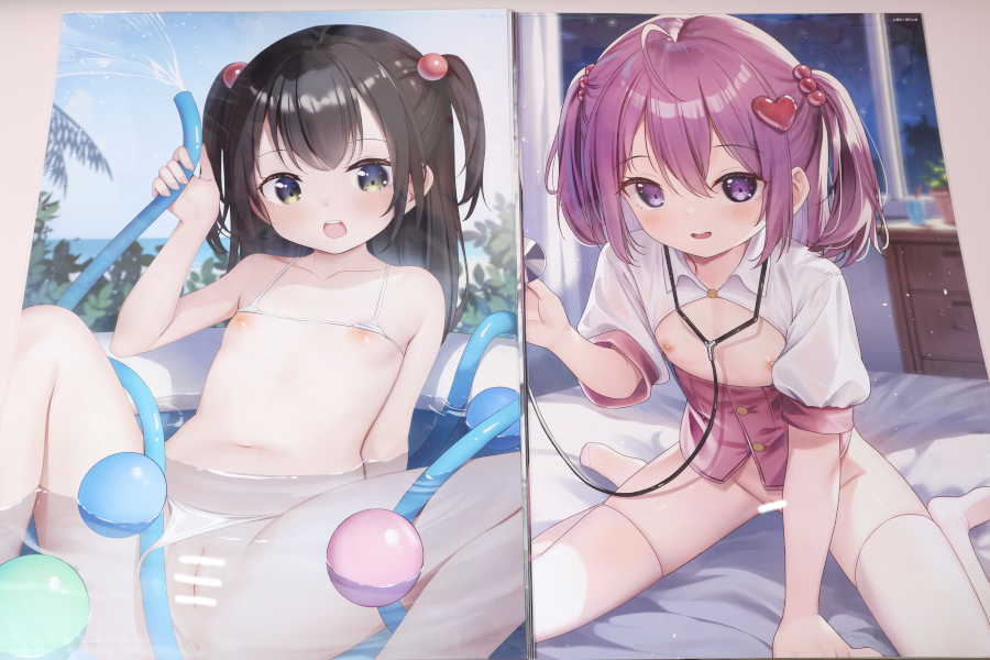 お次はD賞のお風呂ポスター♪こちらは5種の内4種の当たりでコンプとはならず💦材質は柔軟性がありますが厚さ150μmということでそれなりに真っすぐを維持してくれる感じ。表面はしっかり撥水してくれそう。D-2賞のイラストはとっても百合っぽく、おむねもアソコもほとんど見えてませんがエチでした💓💓