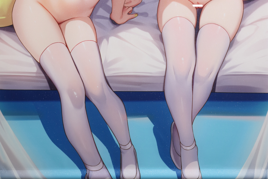 最後おみ足のアップ。白いニーハイに包まれた2人のおみ足は、なんとなくお上品さが漂っててとっても良きです💖💖すらっとした太ももの陽菜ちゃんと、少し履き口の食い込んだムッチリ太ももの小夜ちゃんの対比も、2倍楽しめちゃってとってもお得でした💕💕