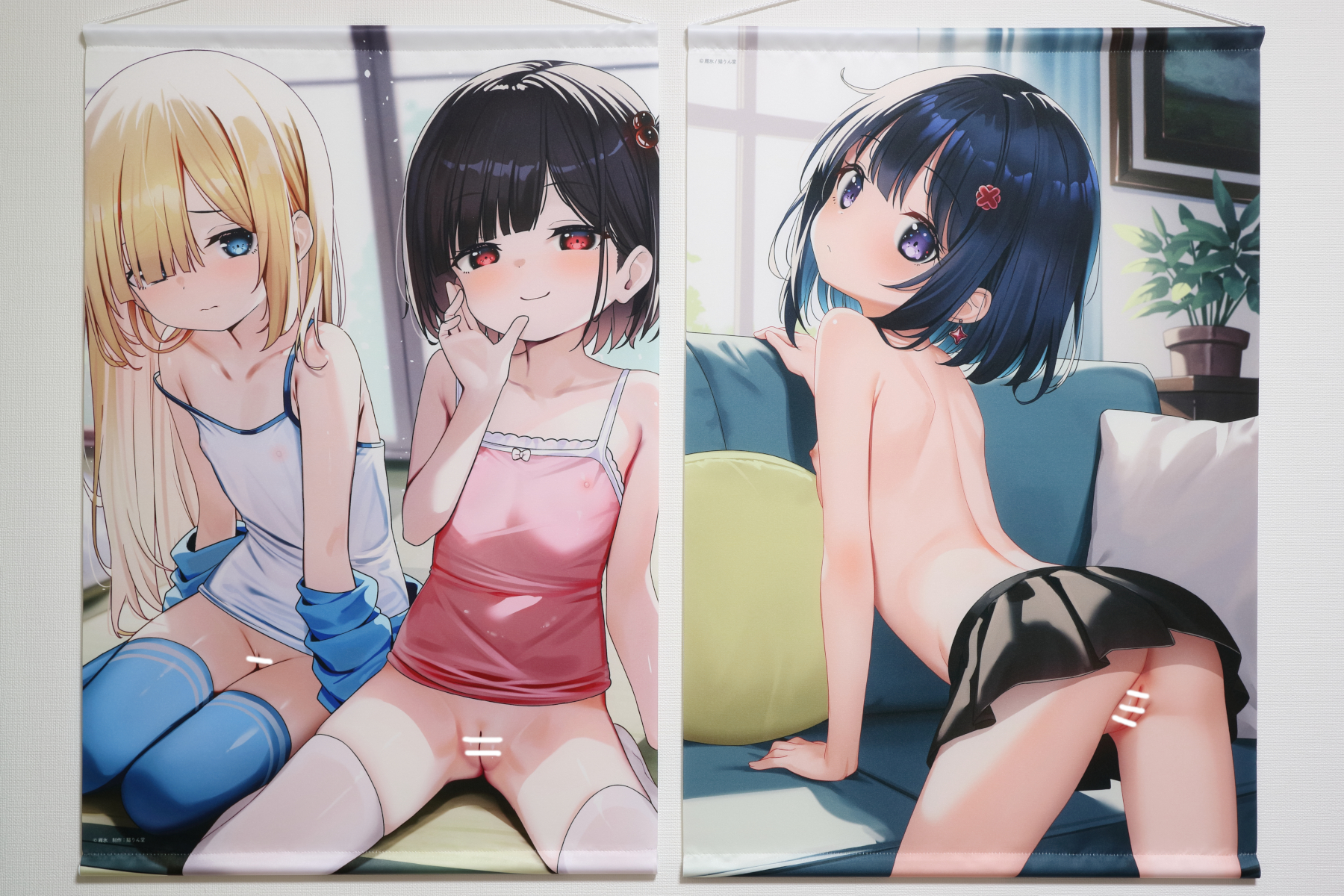 メロンブックスさんでもエッ!なタペストリーを販売されていらっしゃいます。たまに中古ショップさんで販売されているのを見かけますが、同じイラストでもSUJIだったりモザだったり白線で隠れてたりとまちまちな印象です💦購入時期によって修正の入り方が異なるかもなのでその点ご承知おきの上ご購入下さい。Wスエードでなくスエード生地な点もご注意ください。
