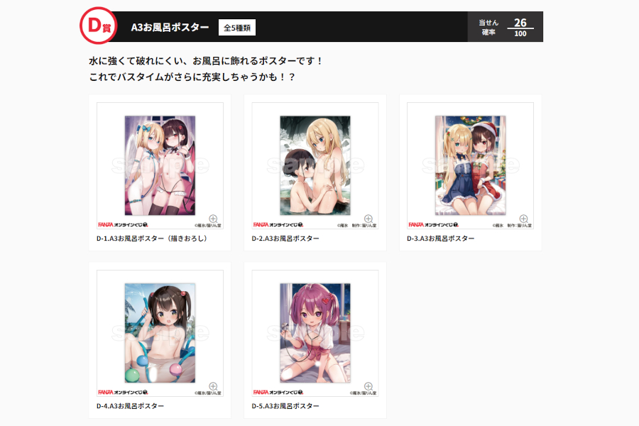 D賞は150μのユポ紙が使用されたA3お風呂ポスター。お風呂ポスターは猫りん堂さんで販売されたことのないグッズなので、どのようなものか気になるところ🛁