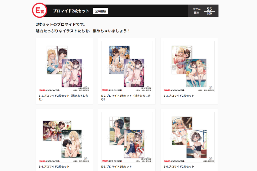 そしてE賞はいつものブロマイド2枚セット🍭どのセットにも少なくとも1枚エッ!なイラストが入ってますんで、ハズレ的立ち位置ではありますけどとりあえず全セット揃えたいです🌟